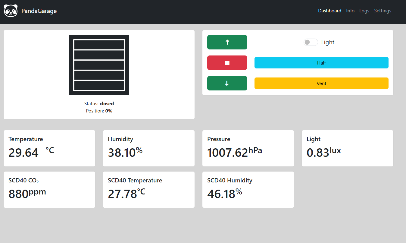 Below the door controls are the sensor readings of the onboard sensors, and if enabled, the external sensor readings. The sensor values are updated if their values change without a page refresh.
